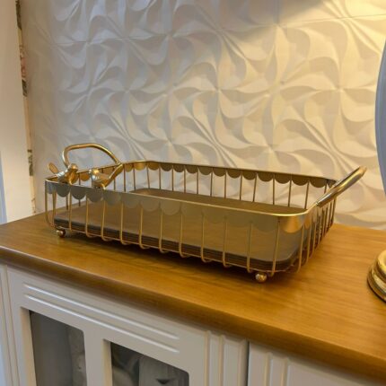 Em até 2x de R$ 69,95 sem juros À vistaR$ 132,91no PixBANDEJA RETANGULAR COM PASSAROS DOURADA G 50X28X13CM