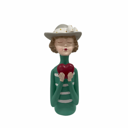 FIGURA DECORATIVA DE RESINA BONECA C/CORACAO 9,5x 23cm