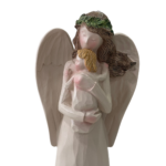 Esta escultura representa um anjo segurando um bebê no colo, simbolizando proteção, amor e cuidado. Feita em resina de alta qualidade, possui acabamento refinado e detalhes delicados que conferem realismo e beleza à peça.