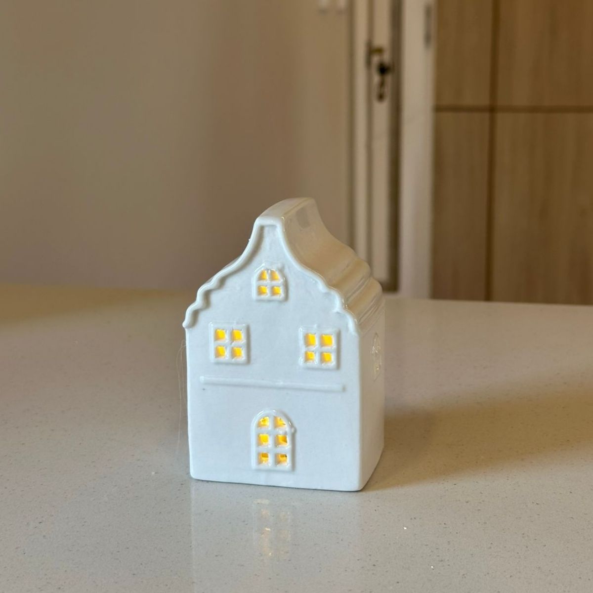 A Casa com Luz Amsterdam da Wolff é um convite ao charme europeu dentro da sua casa. Feita em cerâmica de alta qualidade, seu design delicado com recortes vazados permite que a luz interna se projete com suavidade, criando um ambiente acolhedor e cheio de personalidade. Perfeita para compor decorações natalinas ou trazer charme extra ao décor o ano todo.