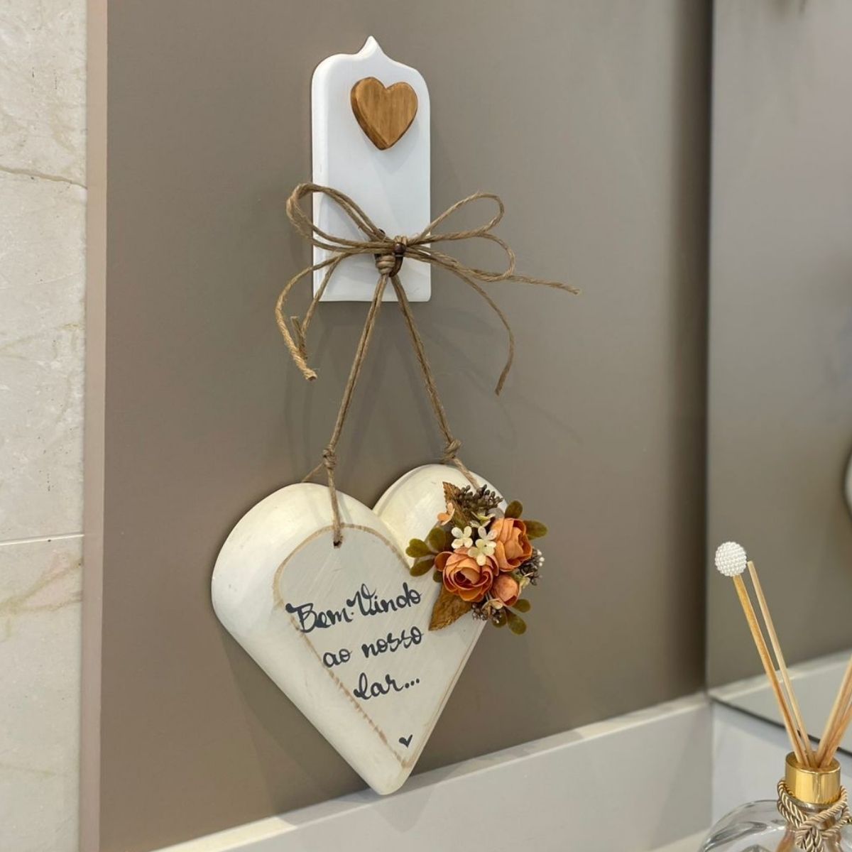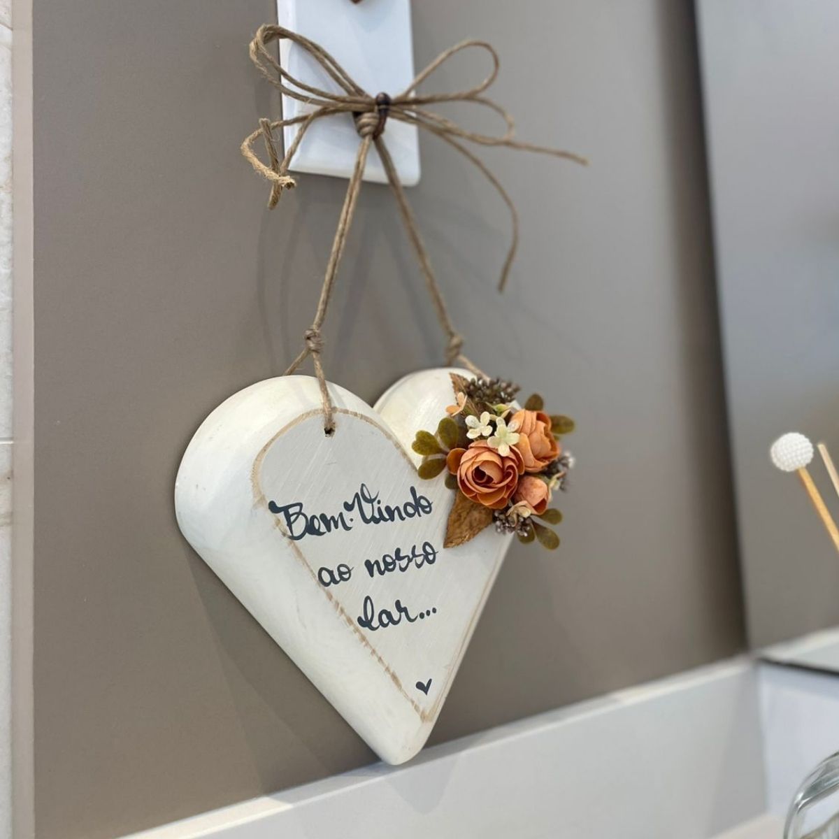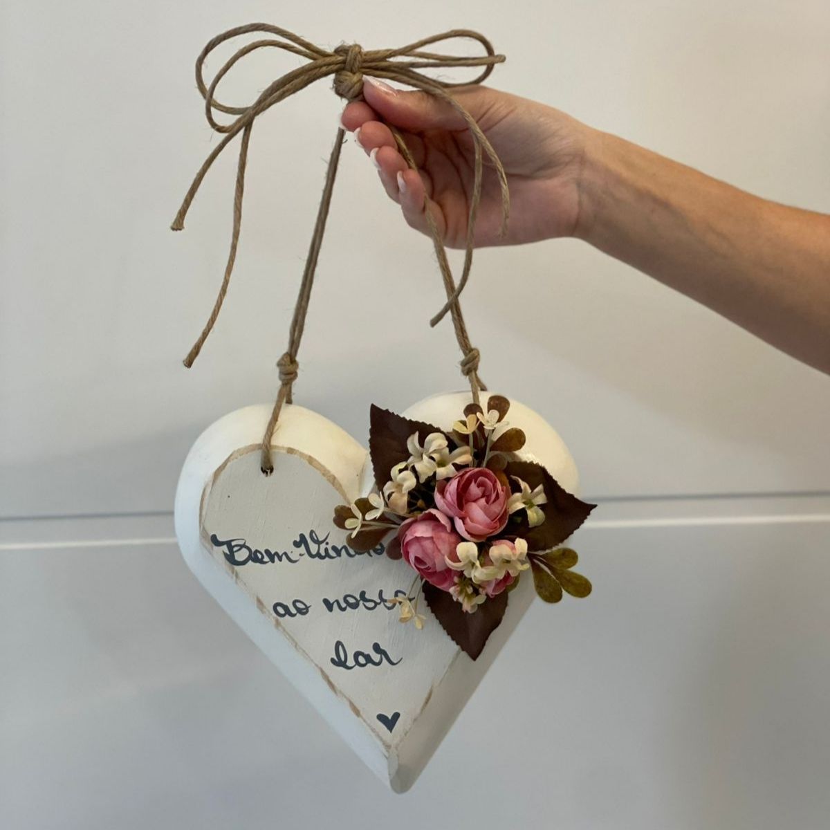 Com acabamento delicado, frase acolhedora e flores decorativas, esse coração é perfeito para dar boas-vindas com charme e aconchego. Com variação de cores nas flores.