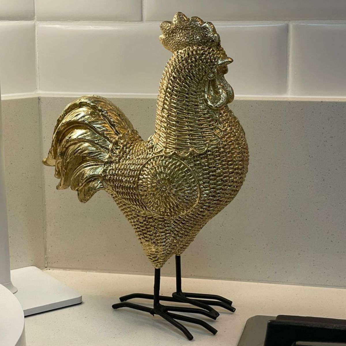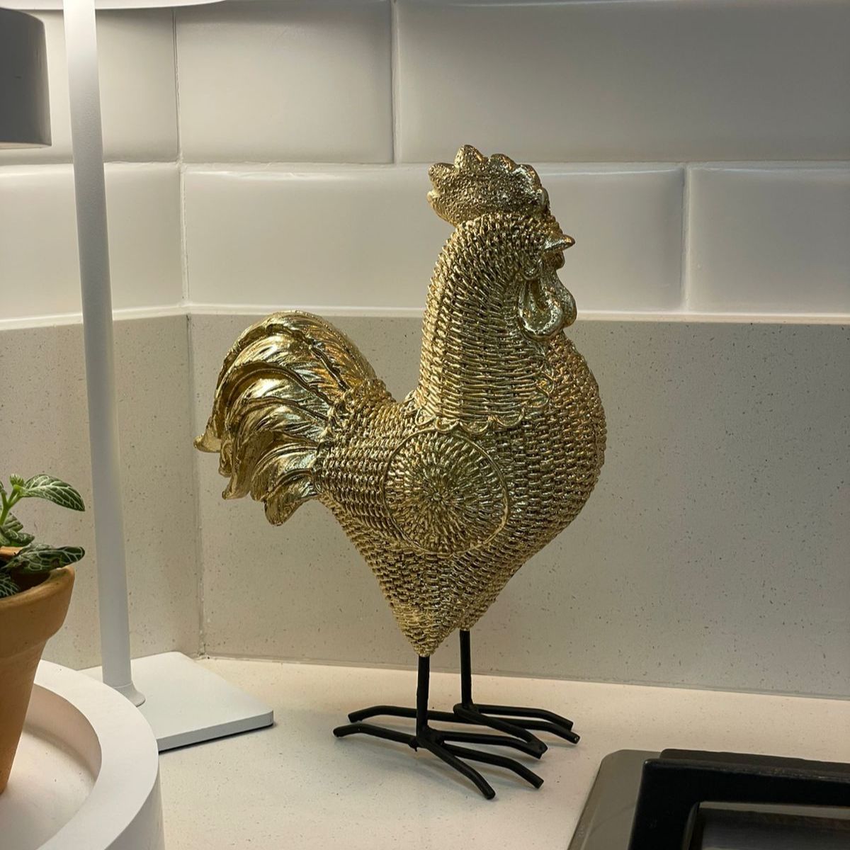 Encante sua casa com a Galinha Decorativa em Resina Dourada, uma peça que une beleza, significado e sofisticação.