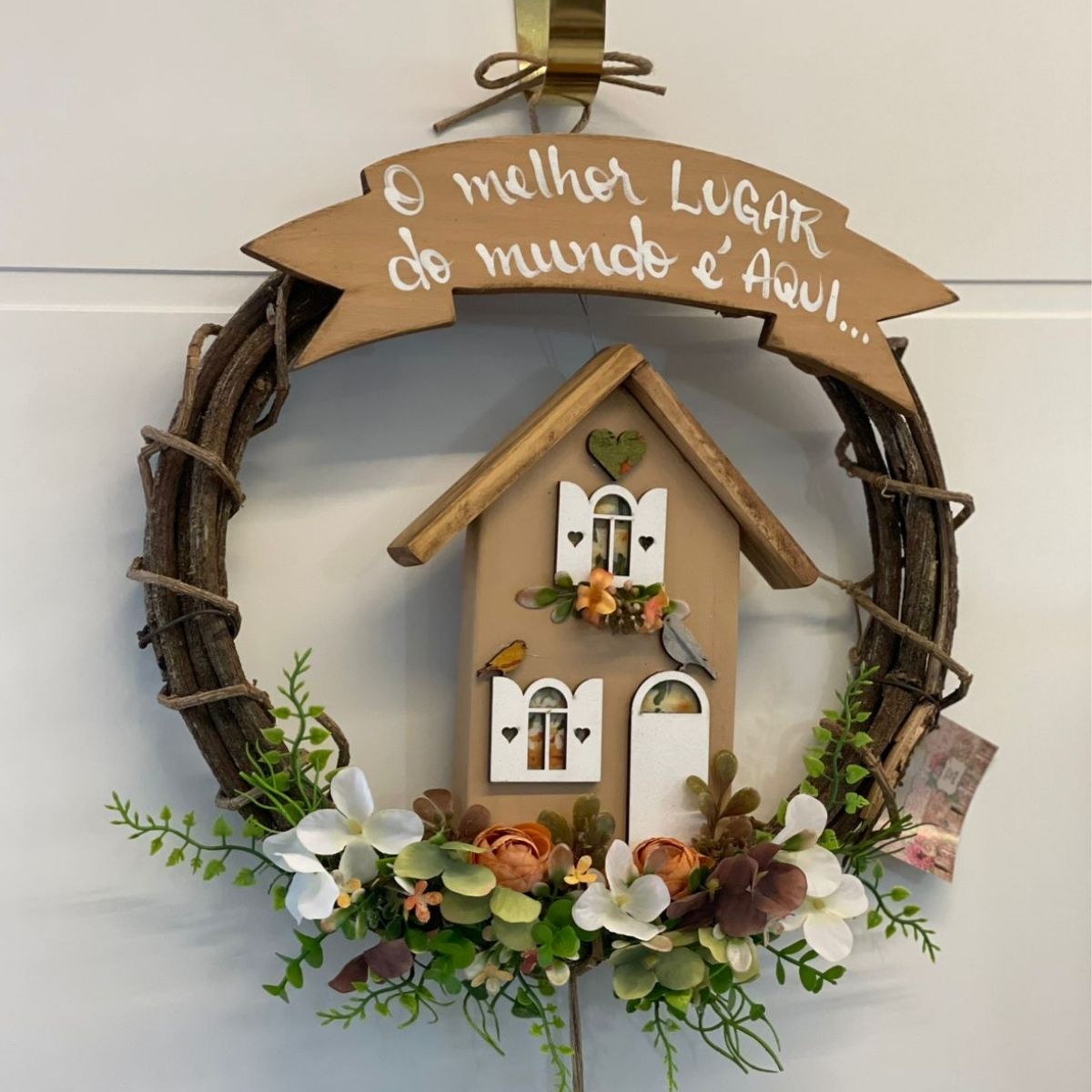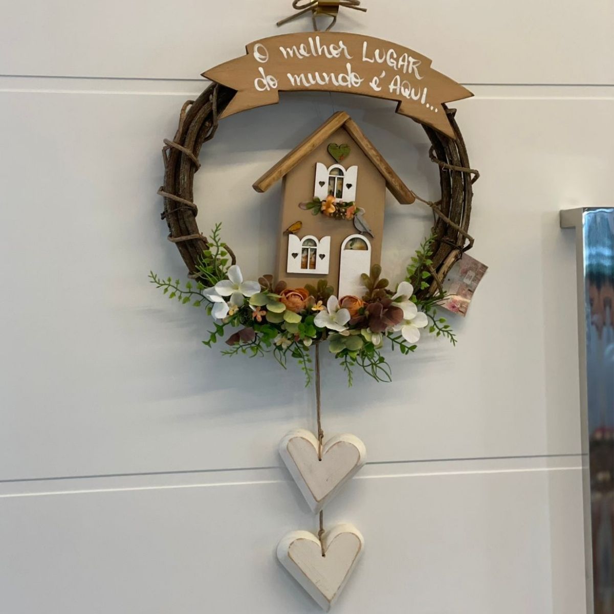 Guirlanda decorativa com casinha e flores, perfeita para trazer aconchego e amor ao seu lar. O detalhe ‘O melhor lugar do mundo é aqui’ transforma qualquer ambiente em um cantinho especial.