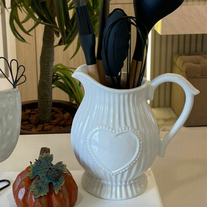 A Jarra Coração é aquele detalhe delicado que transforma qualquer cantinho em um espaço cheio de amor e acolhimento. Além de funcional, ela decora com suavidade e transmite a sensação de um lar cuidado, onde cada detalhe importa. Pode ser usada tanto para servir quanto como vaso decorativo ou até organizador de utensílios, trazendo charme e bem-estar ao seu dia a dia.