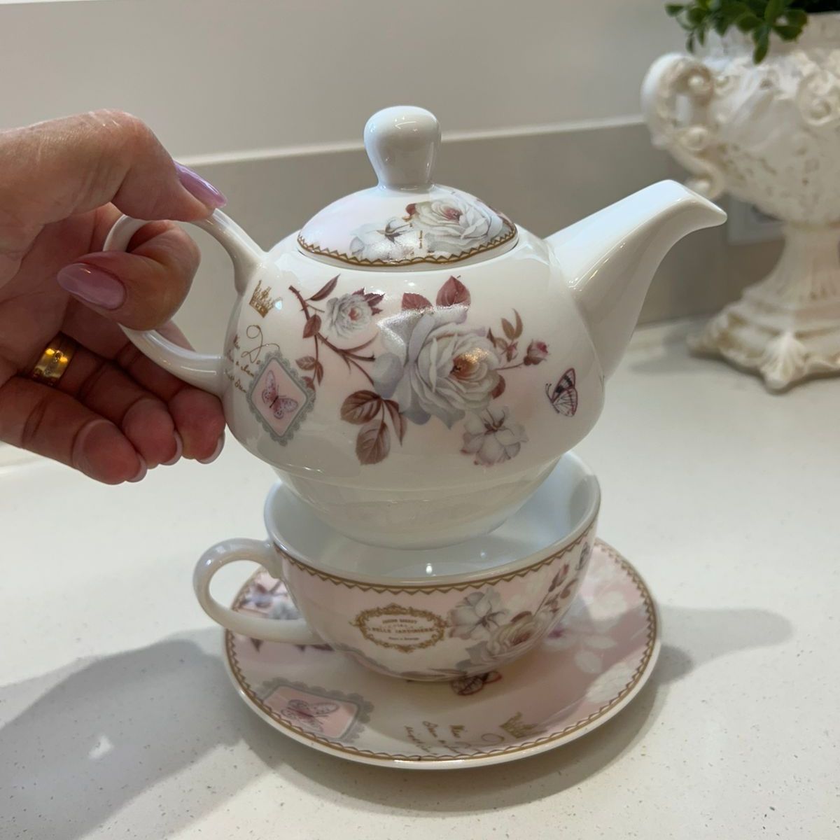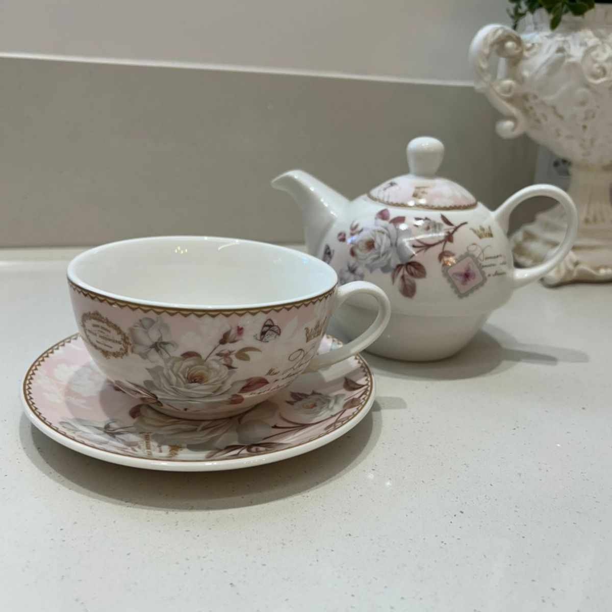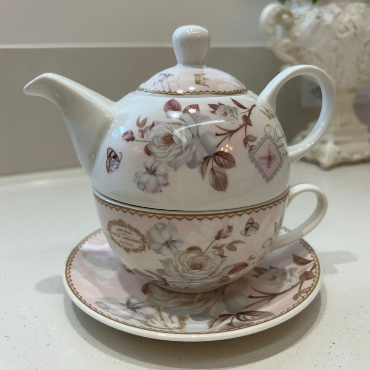 Um conjunto encantador que transforma a hora do chá em um momento especial. Com estampa floral em tons suaves, detalhes de pássaros e borboletas, e acabamento delicado, essa peça une charme e elegância na medida certa. Ideal para servir com sofisticação ou presentear alguém especial.