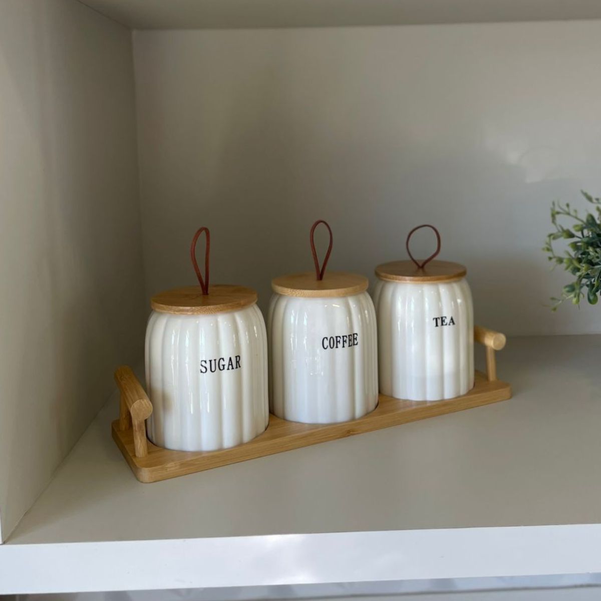 Delicado e funcional, esse kit com 3 potes é perfeito para deixar sua cozinha ainda mais organizada e cheia de charme. Com design canelado em tom neutro e tampas em bambu, ele traz um toque acolhedor e natural para o ambiente.