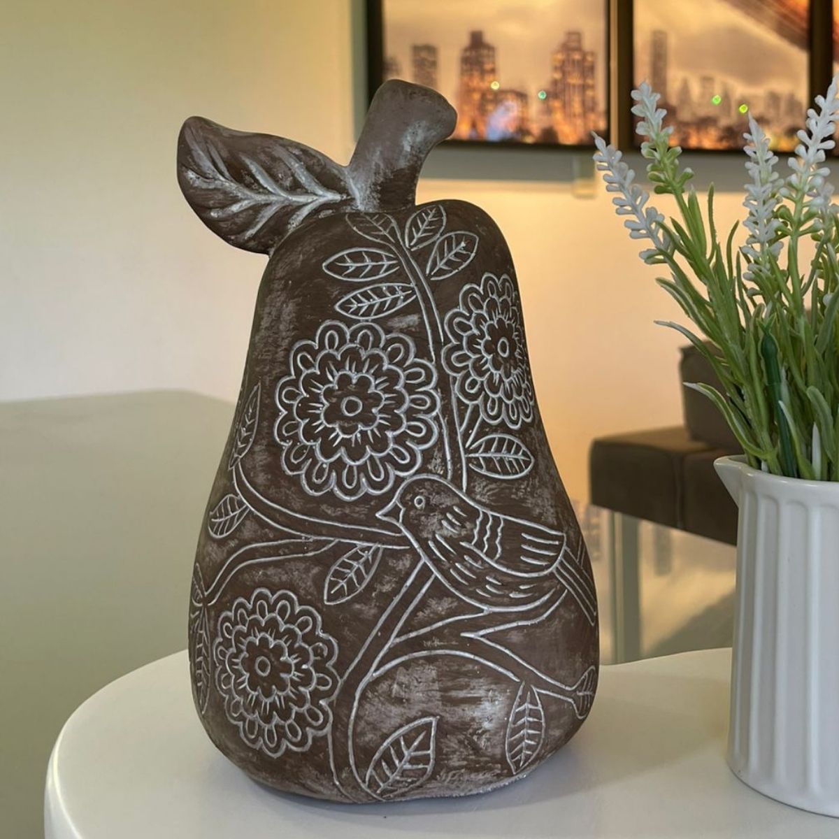 A Pera Decorativa em Cimento é uma peça que transmite aconchego, equilíbrio e conexão com a natureza. Seu formato orgânico e os delicados desenhos de pássaros e flores ajudam a criar um ambiente acolhedor e sereno, ideal para quem busca bem-estar visual e emocional no dia a dia. É perfeita para compor cantinhos especiais, trazendo charme artesanal e personalidade à decoração, além de ser uma excelente opção de presente afetivo e elegante.