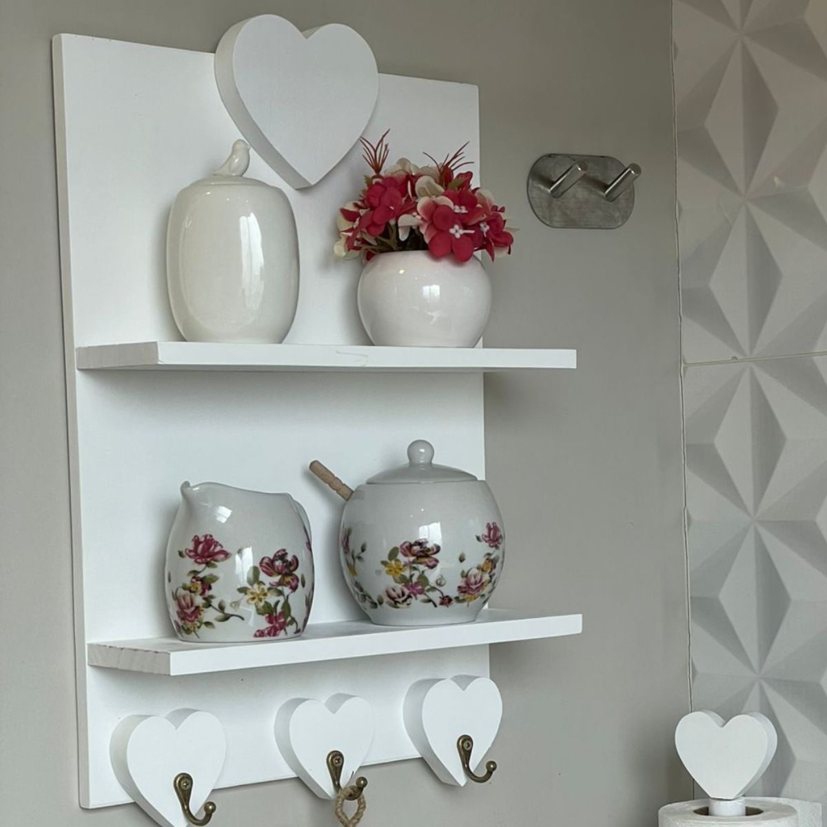Transforme qualquer ambiente com a delicadeza desta prateleira decorativa em madeira, feita para acolher com charme e propósito. Com recortes de corações que evocam carinho e sensibilidade, essa peça vai além da organização, ela conta histórias e valoriza os detalhes que tornam um espaço verdadeiramente seu.