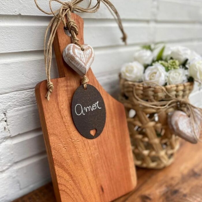 Mais do que um acessório, a Tábua de Cedro com Tag Amor e Coração é uma peça que transmite carinho, beleza e significado. Produzida em madeira natural, ela une o charme rústico à delicadeza dos detalhes artesanais, perfeita para compor a mesa posta ou decorar cantinhos especiais da casa.