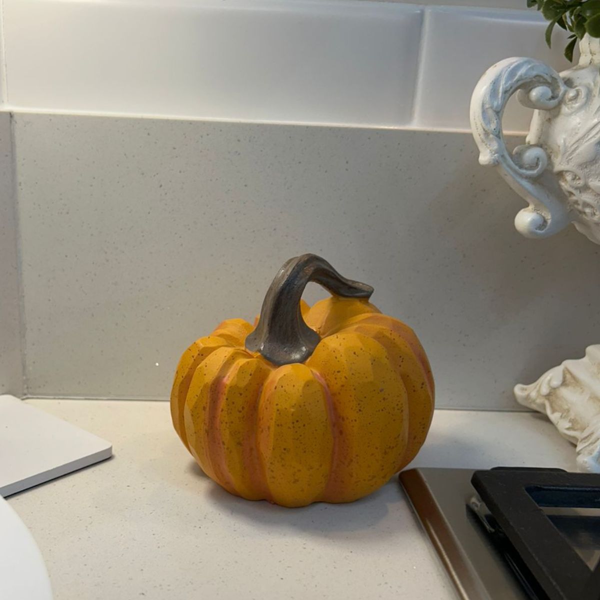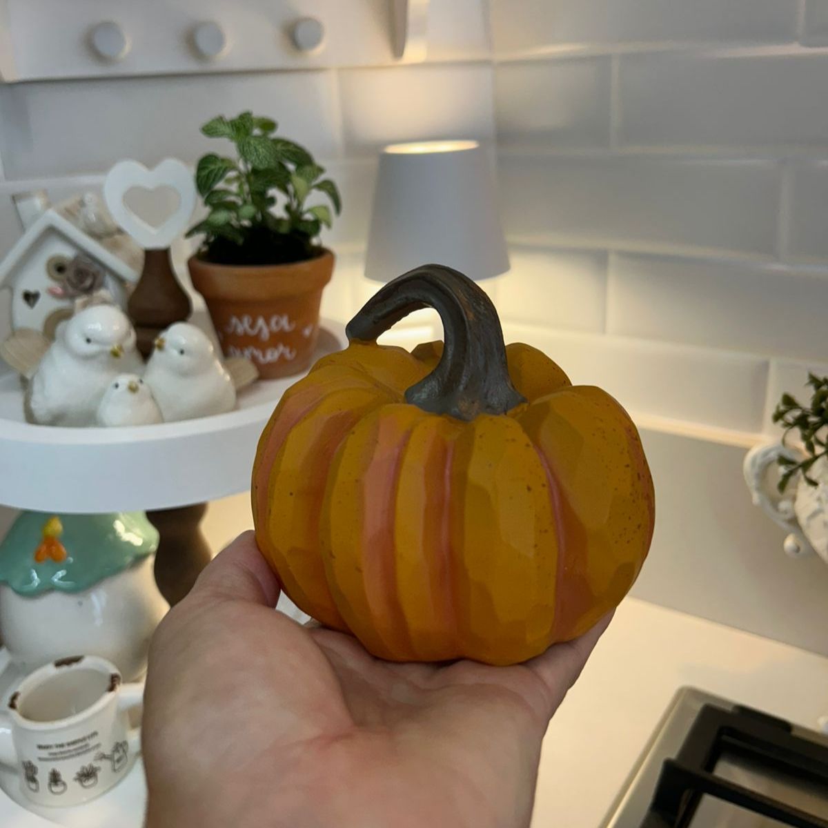 A peça perfeita para trazer aconchego e personalidade à sua decoração. Nossa abóbora decorativa possui acabamento texturizado, pintura em tom alaranjado com nuances suaves e cabo em contraste escuro, que valoriza ainda mais os detalhes da peça.